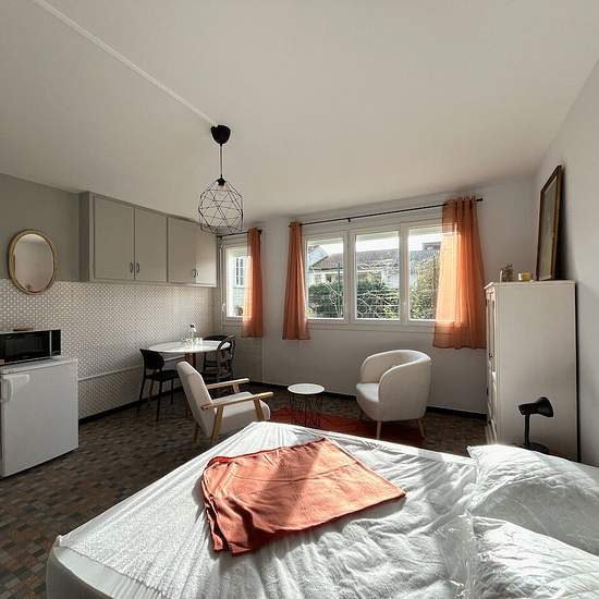 Villeneuve sur lot, studio meublé d'environ 26 m². Entièrement rénové, il vous satisfera par sa luminosité, sa vue sur un jardin tranquille, et son côté pratique : cuisine avec plan de travail et plaque, micro-onde, frigo, nombreux rangements. Lit en 140 cm confortable et petit coin salon. Salle d'eau avec douche neuve. Plein centre ville, proche des commodités. Classe énergie d. Les informations sur les risques auxquels ce bien est exposé sont disponibles sur le site géorisques : logement disponible retrouvez toutes nos offres sur le site d...
