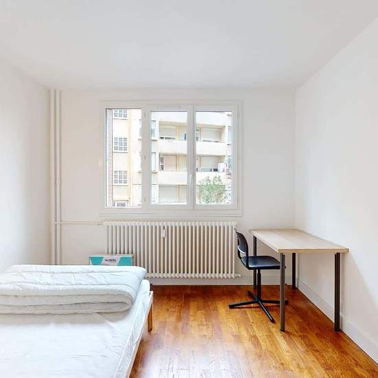 APPARTEMENT 5 PIÈCES AVEC BALCON Au 30 Rue Frédéric Fays dans la commune de Villeurbanne (69100), découvrez cette colocation de 4 chambres de 82 m². LA CHAMBRE La quatrième chambre de cette colocation est meublée avec lit double, placard/dressing de rangement et bureau. Le plus : L'accès à la terrasse partagée avec le salon ! LES ESPACES COMMUNS L’appartement a été agréablement agencé avec du mobilier de goût. Il se compose de quatres chambres, de trois salles de bain (dont une se trouvant dans la chambre 3), d’une cuisine ouverte sur un s...