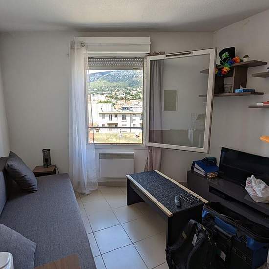 À louer en très bon état studio de 20 m² coté cour avec vue sur le Faron. Il se compose : entrée, salon avec coin cuisine et une salle d'eau et WC. Il bénéficie d'un ascenseur et l'eau est comprise dans les charges. Stationnement aux alentours, à proximité de la Faculté de Toulon, arrêt de bus en bas de l'immeuble et de tous les services. L'appartement sera disponible au 17 Novembre 2025.