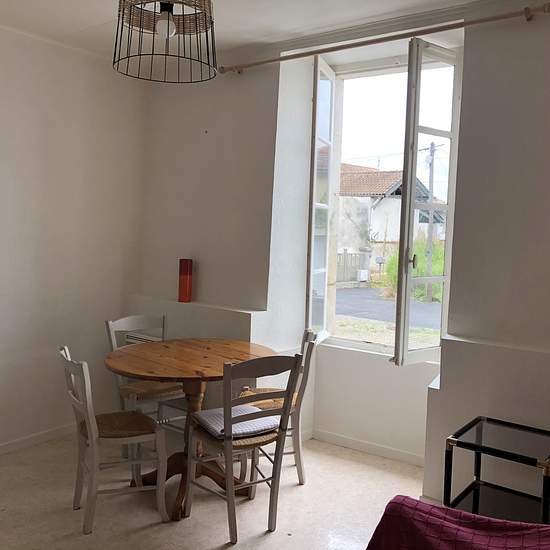 BARBEZIEUX (16) - A deux pas du centre ville, petite maison d'environ 40 m2 de plain-pied comprenant une entrée/cuisine, séjour, une chambre, salle d'eau/wc.Chauffage électrique. Possibilité de stationnement devant la maison. Commerces et services à pied.