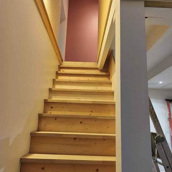 Studio avec chambre et salle de bain sur mezzanine ouverte. Location possible à partir de mars. D'autres photos possibles dès la fin des travaux (courant février).