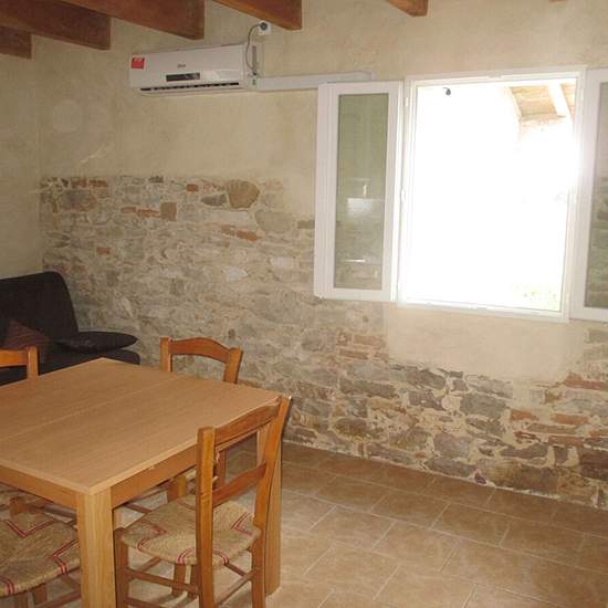 Charmante maison meublée de plain pied à Bioule. A l'entrée se trouve un petit coin buanderie, à côté la salle d'eau avec WC, ensuite nous entrons dans la pièce de vie composée d'un coin cuisine entièrement équipée ouverte sur un salon chaleureux et cosy avec son insert bois et pour finir la chambre avec placards. En pièce annexe vous avez le bureau avec son entrée indépendante. Dehors vous profiterez d'une terrasse carrelée et d'un bout de jardin. Disponible : 02/02/2026 Référence : 516G