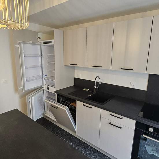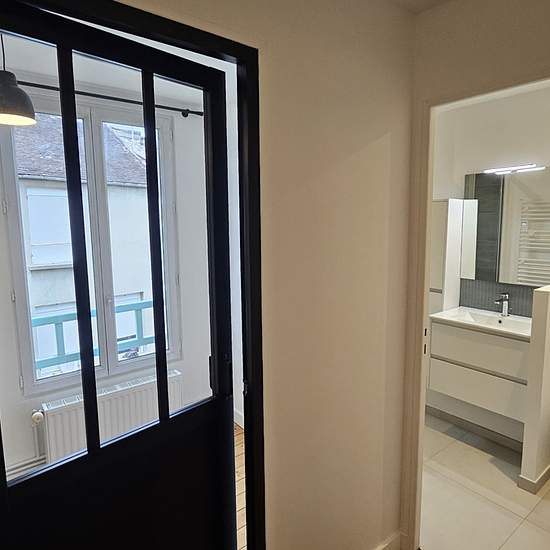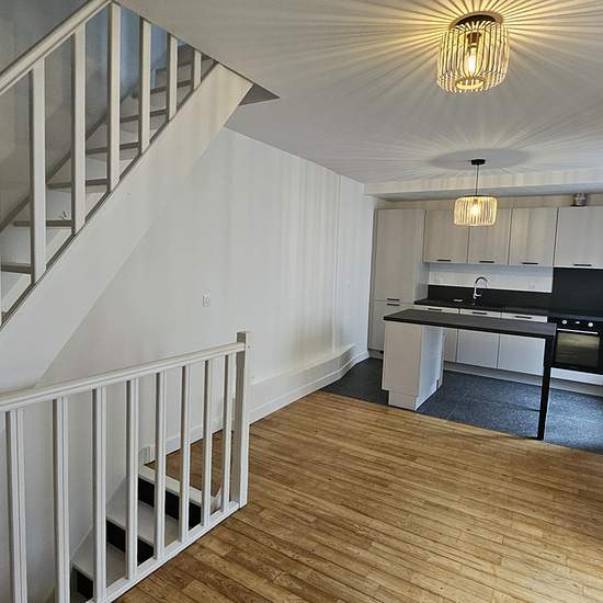 Idéalement située en plein centre-ville de Fontainebleau, à deux pas du quartier piéton Sablons et de la place du marché. Donnant sur une cour cette maison lumineuse sur 2 niveaux, se compose d'une entrée avec buanderie et WC avec lave mains au rez-de-chaussée. Au premier étage, vous découvrirez une pièce de vie lumineuse avec une cuisine moderne meublée et équipée, entièrement ouverte sur le séjour, avec ilot central, parfaite pour recevoir. Le deuxième étage offre un espace nuit confortable avec un palier desservant une chambre de bon volu...