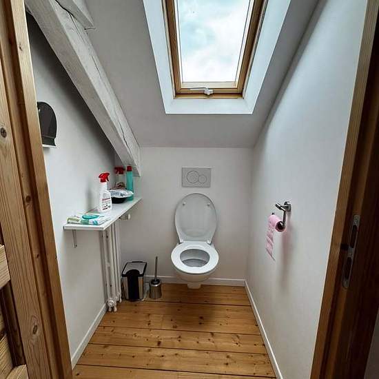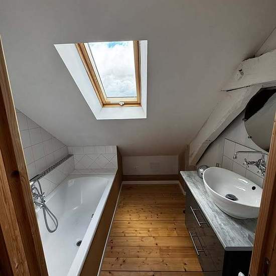 En Loire-Atlantique (44), au 2ème étage d’une maison bourgeoise, entre Ancenis et Châteaubriant, en centre bourg d’Issé, nous proposons la location d’une chambre meublée et de sanitaires (salle de bain + toilettes séparés). Lire l’annonce jusqu’à la fin ! Votre espace se compose de la façon suivante : • Chambre mansardée avec deux fenêtres et velux de 25 m² au sol, avec canapé lit, placards, portants pour vêtements, bureau, chaise. • Toilettes indépendants de 1,50 m² • Salle de bain avec vasque et baignoire de 4,5 m² Une autre chambre au mêm...
