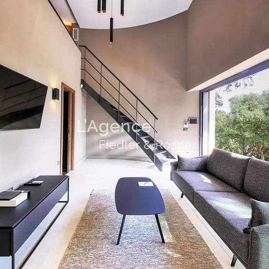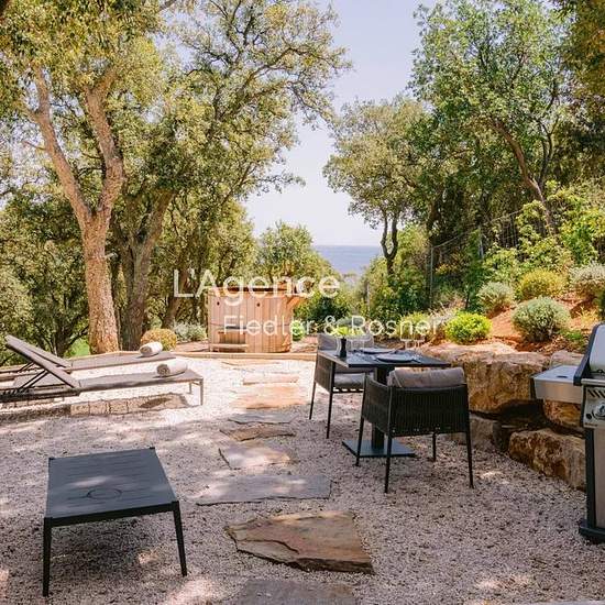 Villa de 68 m2 - Terrain de 500 m2 - 1 Suite - 1 salle de bain Villa intimiste située à La Croix-Valmer, au Domaine Louise. Grande suite avec une unique chambre en mezzanine (jusqu'à deux personnes), terrasse avec Bain Nordique chauffé, vue mer et sur le parc du Domaine Louise. La Villa Mathilde est composée d'un salon (26 m2), d'une cuisine familiale (7 m2) tout équipée avec lave-vaisselle, éléctroménager et machine à café Nespresso. Chambre en mezzanine (22 m2) avec dressing. Salle de bain (13 m2) avec douche à l'italienne. Terrasse avec v...