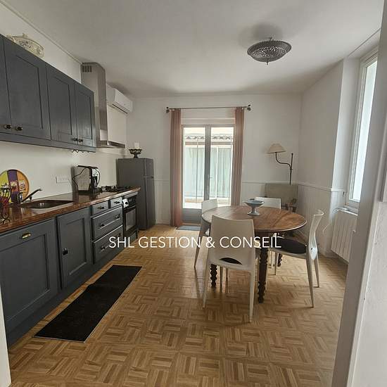 Charmante maison de ville dans ruelle agréable, 55m2 meublé avec goût, de belles prestations. Cette maison se compose de 2 niveaux avec Hall d'entrée avec rangements et machine à laver, grande cuisine toute équipée, donnant sur une terrasse attenante au garage avec un abri fermé, à l'étage, salle d'eau et wc, un beau séjour trés lumineux traversant confortable, une chambre spacieuse avec placard.