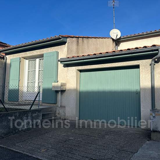 Maison à louer en plein centre-ville de Tonneins, disponible à partir du 1er décembre. Idéalement située, elle offre un accès rapide à pied aux commerces, écoles et services. Elle se compose d'un séjour lumineux, d'une cuisine indépendante semi-équipée ( élements meubles, plaques électriques + hotte, évier) en cours de pose --> photo du rendu , d'une chambre, d'une salle de bain et d'un WC séparé. Vous apprécierez également ses atouts pratiques : un garage privatif et un petit jardin avec terrasse, parfait pour profiter des beaux jours. phot...