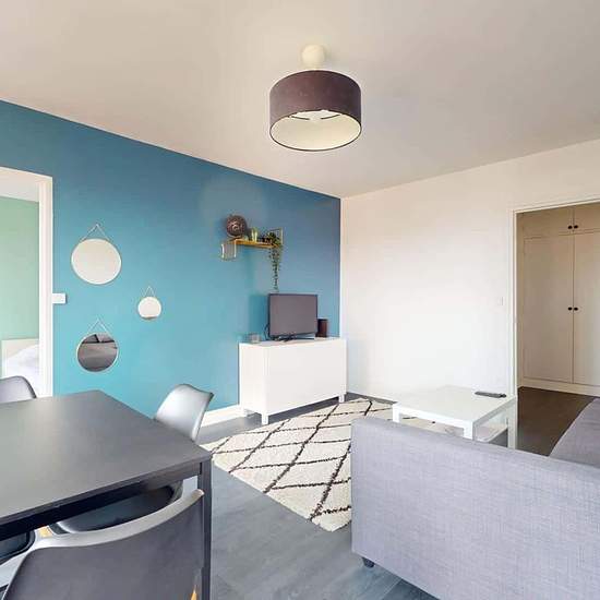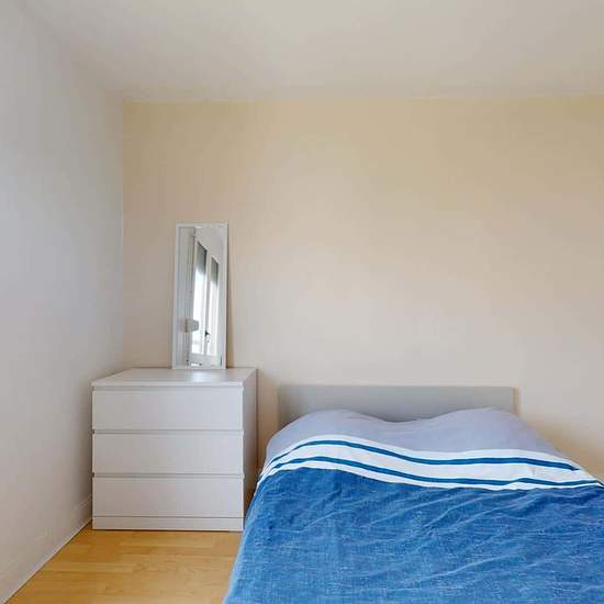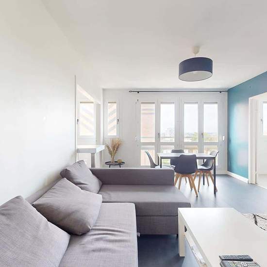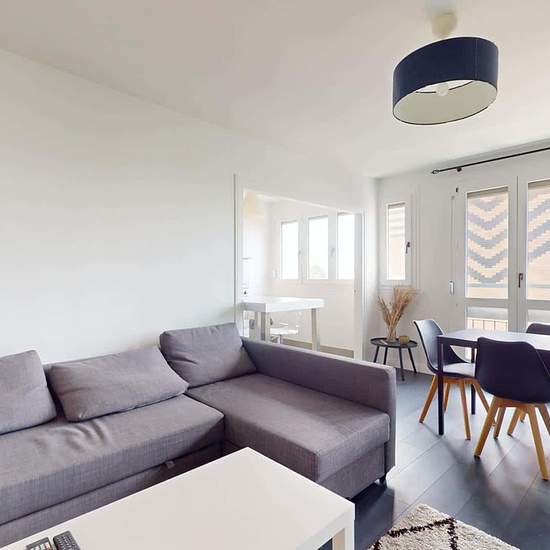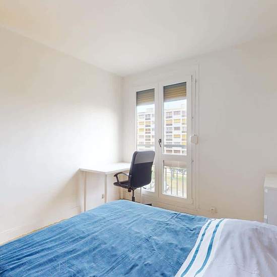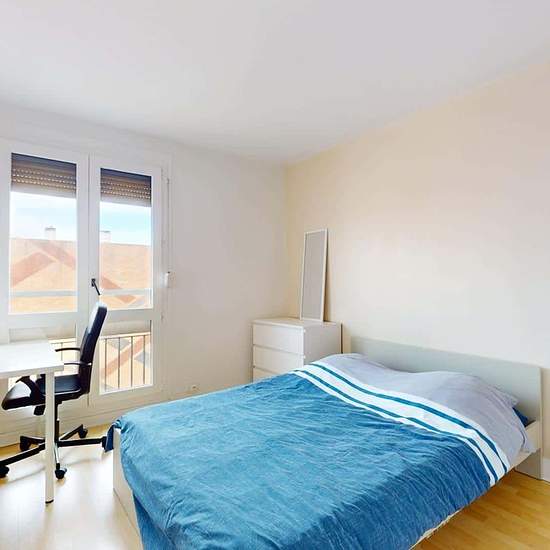 Oqoro vous présente cette colocation 3 chambres de 77 m² située au 4 square des Troyens à Amiens LA CHAMBRE Cette chambre est agréable et dispose d'un lit double, d'un bureau avec une chaise et de rangements. LES ESPACES COMMUNS L'appartement s'ouvre sur une entrée avec rangements desservant un lumineux séjour. Celui-ci dispose d'un canapé, d'une table basse, d'un meuble TV avec TV, et d'une table avec 4 chaises. La cuisine est équipée d'un four, de plaques de cuisson, d'une hotte, d'un réfrigérateur avec congélateur, d'un évier, d'un micr...