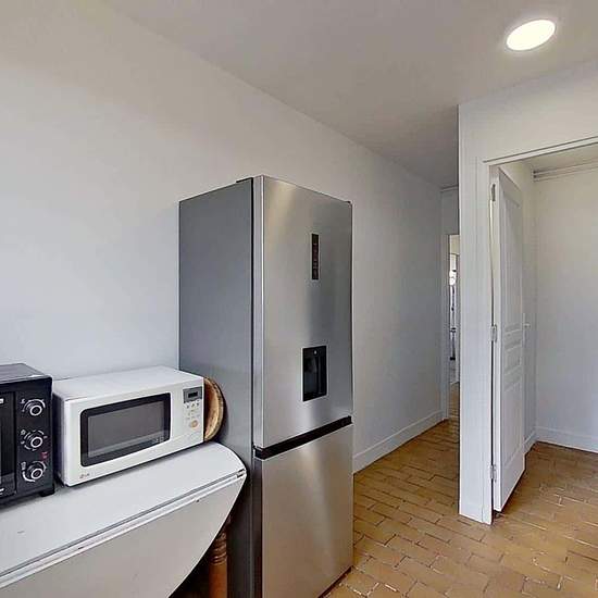 Spacest vous présente cette colocation de 4 chambres de 90 m², située au 101 Rue Louis Lumière à Bihorel, au 14ᵉ étage d’une résidence sécurisée avec ascenseur. LE LOGEMENTL’appartement s’ouvre sur un séjour lumineux à la décoration sobre et contemporaine, offrant un espace convivial avec un canapé, un fauteuil, une table basse et un coin repas face à de larges fenêtres donnant sur la ville.La cuisine séparée, entièrement rénovée, est équipée de nombreux rangements, d’une plaque de cuisson, d’un réfrigérateur-congélateur, d’un micro-ondes, d...