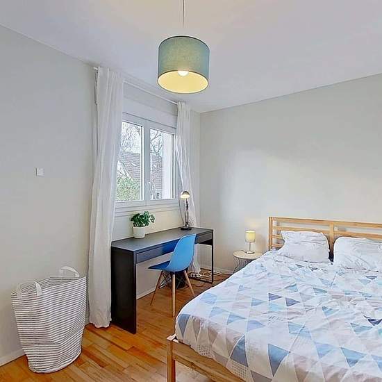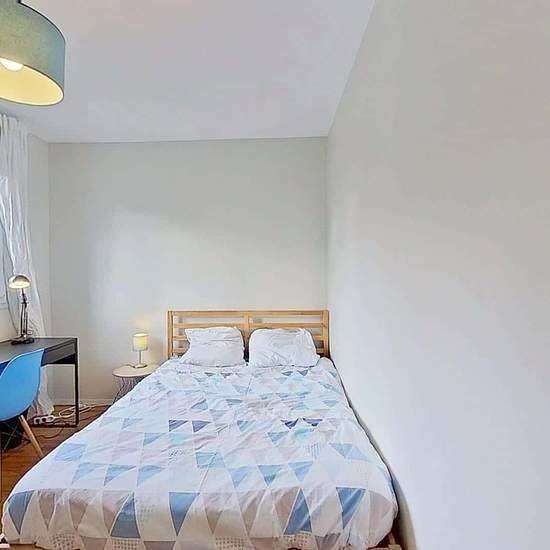 Spacest vous présente cette colocation de 4 chambres de 83,94 m² au 2 Rue de la Cardonnière à Caen. LA CHAMBRELa chambre est équipée d'un lit double, d'une table de nuit, d'un bureau avec une chaise ainsi qu'une penderie. LES ESPACES COMMUNSLa pièce de vie est meublée avec un canapé, un fauteuil, une table basse, un meuble TV ainsi qu'une télévision, une petite étagère et une table à manger avec des chaises.La cuisine séparée est équipée d'un four, d'un micro-ondes, de plaques de cuisson, d'une hotte, d'un évier, d'un réfrigérateur avec comp...