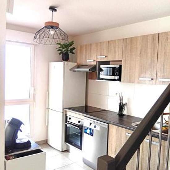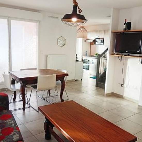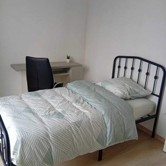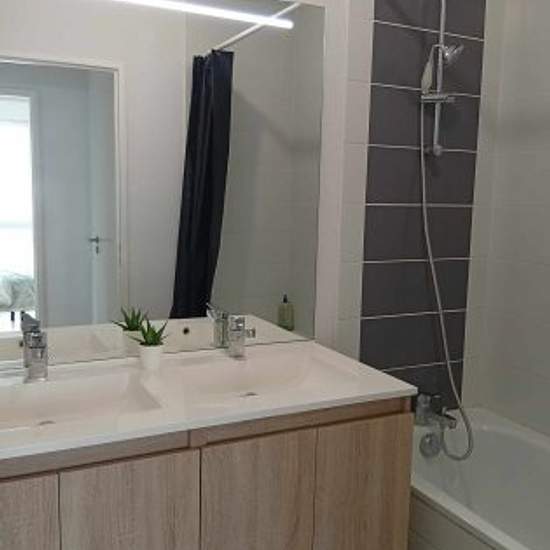 I am offering a furnished room in a 74m² T4 duplex flat located in Cenon Bas, just 1 minute's walk from tram A (Bordeaux centre in 15 minutes). The flat is fully equipped and ready to live in: fitted kitchen (oven, microwave, dishwasher), washing machine, tumble dryer, internet fibre included, 2 bathrooms, 2 WCs, loggia and secure parking space. The bedroom is comfortable and furnished with a bed, desk and storage space. The flat is bright and located in a quiet, secure residence. Ideal for mobile students, work-study students or young profe...