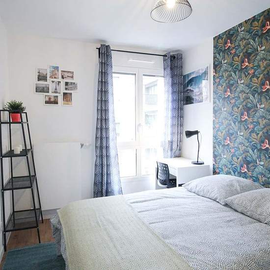 [FR] Chambre de 10m², entièrement meublée. Elle dispose d’un lit double (140x190) accompagné d'une table de chevet avec lampe. Un espace de travail est disponible, composé d'un bureau avec chaise et lampe. La chambre propose également plusieurs rangements : un placard intégré avec penderie et une étagère. Situé aux portes de Paris, cet appartement de 90m² bénéficie d’un emplacement idéal, à deux pas du Parc Roger Salengro et de la station de métro : Saint Ouen et à proximité de toutes les commodités. L’appartement se trouve au 5ème étage d’u...