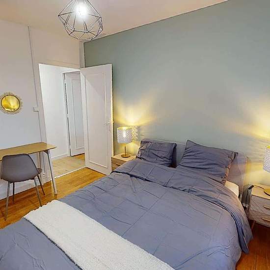 APPARTEMENT 6 PIÈCES AVEC BALCON Découvrez au 14 Rue Barral De Montferrat (Grenoble, 38100) cette colocation de 4 chambres de 84 m². LA CHAMBRE Cette lumineuse chambre de 10,7m2 comporte un grand placard mural, un lit double, deux tables basses avec lampes, un bureau avec sa chaise et plusieurs éléments de décoration. Cette chambre a un accès direct sur le balcon. LES ESPACES COMMUNS L'appartement entièrement rénové s'ouvre sur une grande pièce à vivre, son coin salle à manger avec une table et quatre chaises. Le coin salon comporte un can...