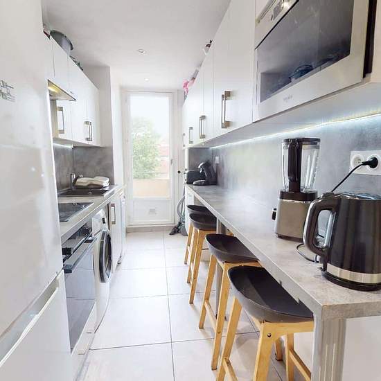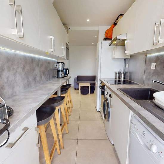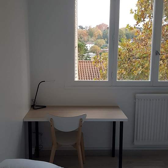 APPARTEMENT 4 PIÈCES AVEC BALCONVenez découvrir cette colocation de 4 chambres de 66 m² située au 165 Cours Docteur Long (Lyon). LA CHAMBRELa chambre 3 se compose d'un lit double, d'une table de chevet accompagné de sa lampe, d'un bureau avec sa chaise, d'un TV murale et d'un grand meuble étagère. LES ESPACES COMMUNSLe logement se compose d’une cuisine, de deux salles de bain, et de quatre chambres. L’entrée dispose d’un espace salon muni d’un canapé et d’une table basse. Ensuite, vous découvrirez une cuisine très bien équipée (frigidaire, p...