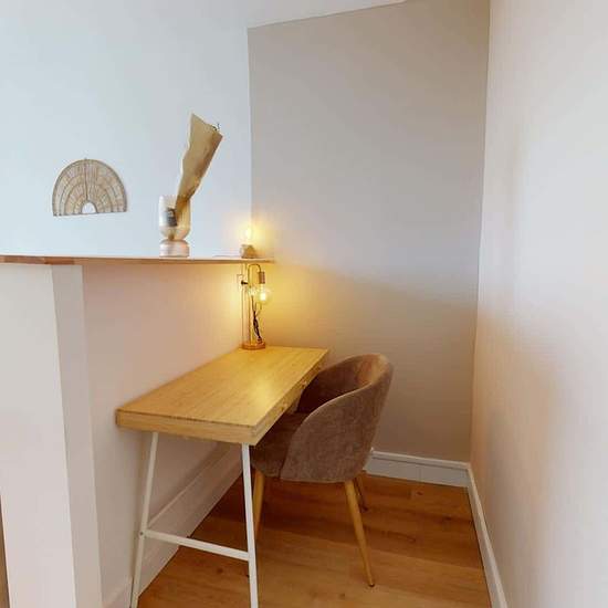 Oqoro vous présente cette colocation 5 chambres de 87 m² située au 342 rue de la Piémente dans le 9ᵉ arrondissement de Lyon. LA CHAMBRE Cette chambre est lumineuse grâce à sa grande fenêtre orientée sud-est, elle dispose d'un lit double, d'une table de chevet, d'un bureau et de nombreux rangements. LES ESPACES COMMUNS Cet appartement de 6 pièces s'ouvre sur une entrée avec rangements desservant un séjour richement décoré. Celui-ci dispose d'un canapé, d'une table basse, d'un meuble TV avec TV, d'un fauteuil, d'une table avec 4 chaises et d...