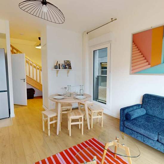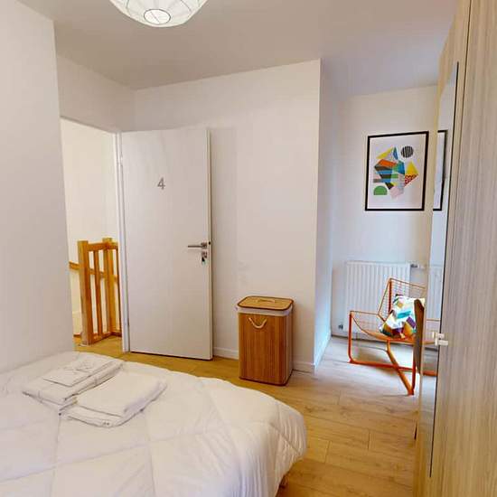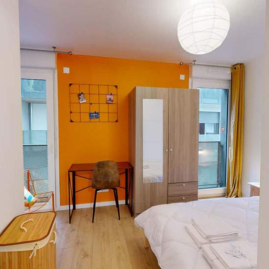 A 300m de la ligne 9 (Croix de Chavaux) et proche du centre de Vincennes et de la station de RER A, nous vous proposons un appartement en duplex avec terrasse dans une résidence entièrement neuve, composé de quatre chambres louées séparément et équipées de tout le linge de lit et de toilette nécessaire. Chaque chambre est dotée d'un lit double, d'un bureau et d'une armoire, de rideaux et volets et est décorée da façon cosy. Les espaces partagés sont constitués d'une cuisine entièrement équipée (congélateur, lave-vaisselle, four, micro-ondes....