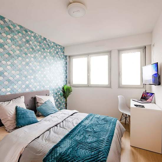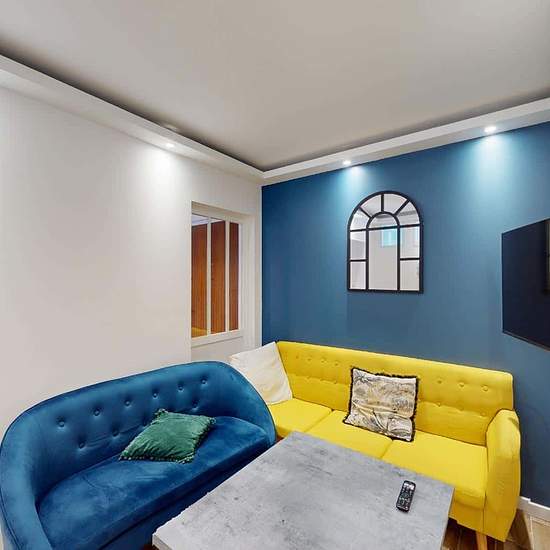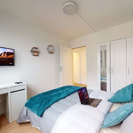 GRAND APPARTEMENT 6 PIÈCES Découvrez au 5 Rue De Provence dans la commune de Poitiers (86000) cette colocation de 5 chambres de 90 m². LA CHAMBRE Cette chambre se compose d'un lit double, d'un placard, d'une bureau avec une chaise et d'un écran plat fixé au mur. LES ESPACES COMMUNS À l'intérieur de l'appartement, vous trouverez une disposition comprenant une entrée, une cuisine, un salon, cinq chambres, deux salles de bain, dont l'une est équipée d'un toilette, et des toilettes séparées. Le salon est aménagé avec deux canapés, un fauteuil, u...