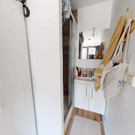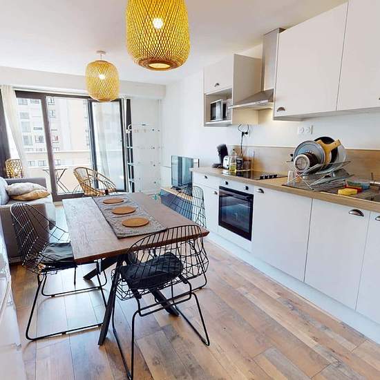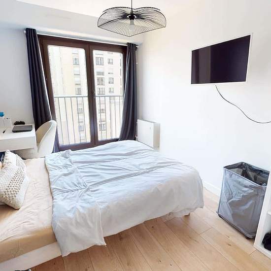 APPARTEMENT 5 PIÈCES AVEC BALCON Au 7 Rue Parmentier dans la commune de Rouen (76100), découvrez cette colocation de 4 chambres de 81,66 m². LA CHAMBRE Cette chambre lumineuse est aménagée d’un lit double, table de chevet, espace bureau, étagère, armoire, miroir et écran plat mural. Elle dispose également d’un espace douche avec meuble vasque. LES ESPACES COMMUNS Cette colocation comporte une pièce de vie avec un espace salon et un espace cuisine/repas. Le salon est aménagé avec : canapé, fauteuil, table basse, meuble tv avec grand écran p...
