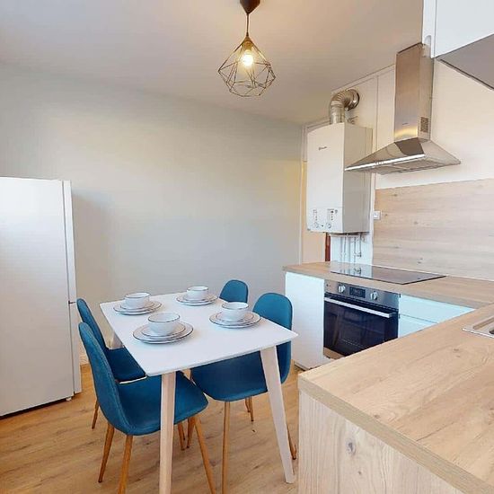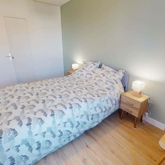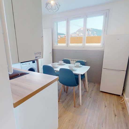 APPARTEMENT 4 PIÈCES AVEC BALCONSpacest vous présente cette colocation de 3 chambres de 57,5 m² localisée au 142 Avenue Ambroise Croizat à Saint-Martin-d'Hères (38400). LA CHAMBRELa chambre 3 lumineuse est aménagée avec un lit double, un bureau, une chaise et un placard de rangements. LES ESPACES COMMUNSLe logement comporte un espace salon avec un canapé, des tables basses et un fauteuil.La cuisine quant à elle est séparée et équipée (machine à laver, four, plaques de cuisson, hotte, frigo, table et rangements)Un espace de rangements supplém...