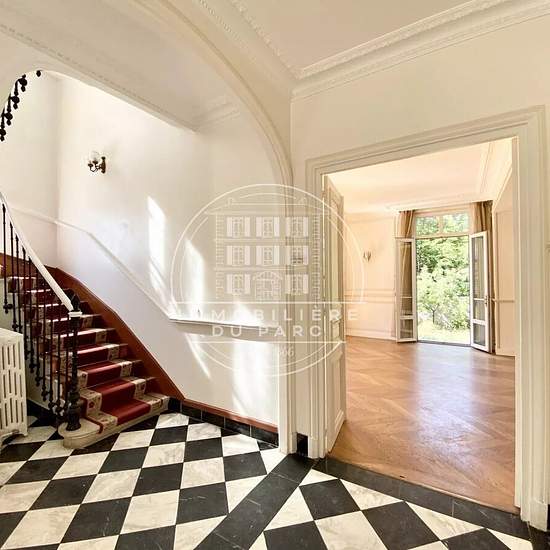 A propos de ce bien Chatou, sur un parc de 1800m², belle maison de Maître comprenant sur 285 m² habitables, en RDC : séjour triple exposition traversant, cuisine totalement aménagée et équipée notamment d'un piano Godin, un bureau. Au 1er, vaste suite parentale de 50m² avec une belle chambre, un bureau, une salle de douche avec w.c. deux autres chambres, un bureau, une grande salle de bains avec baignoire balneo. Au second, 4 chambres, une salle de douche, un dressing. L'ensemble des pièces à vivre est parquetté. Un sous-sol total, un garag...