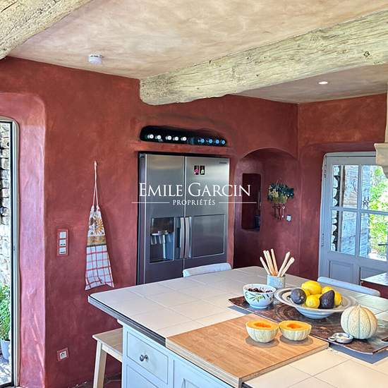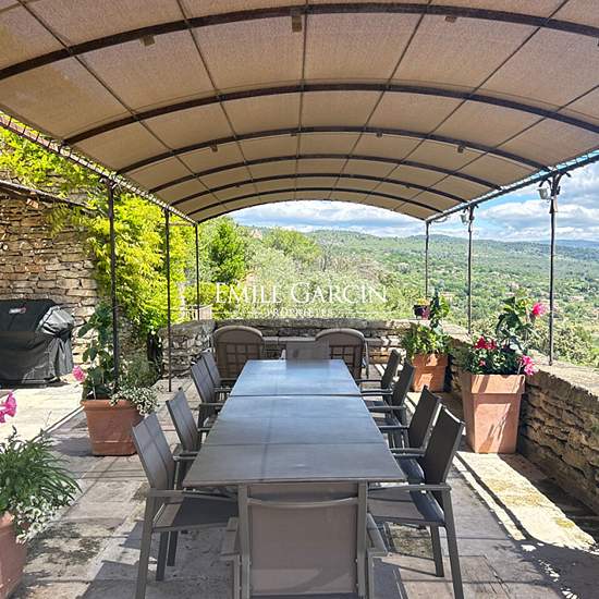 Authentique Mas à l'orée du village, rénové avec goût et élégance. La propriété jouit d'une vue exceptionnelle sur la vallée du Luberon et le village de Gordes. Que ce soit de la piscine à débordement, des différentes terrasses ou encore depuis l'espace jacuzzi, vous bénéficierez de superbes vues panoramiques. La propriété propose 2 salons, 2 salles à manger, un espace bureau, une cuisine entièrement équipée (toutes ces pièces ouvrant sur les extérieurs), une très belle salle de jeux (billard, baby foot, piano), 5 chambres (ouvrant sur les e...
