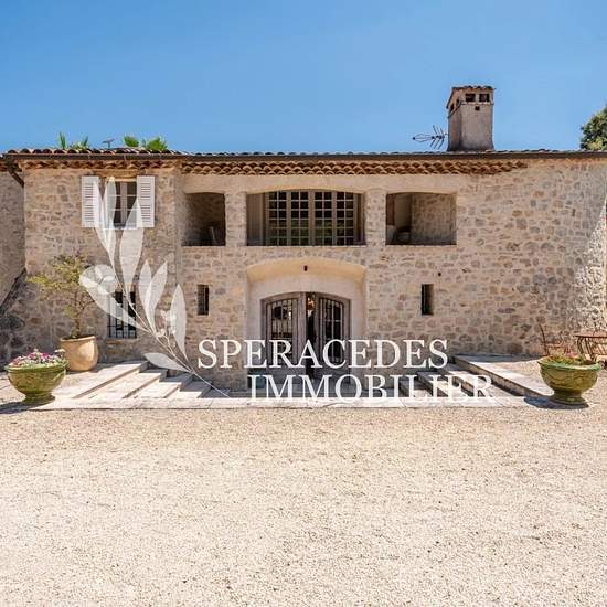 Proche des villages de Spéracèdes et Cabris, nichée au cœur d'un petit domaine privé et sécurisé, cette superbe propriété de caractère, anciennement résidence de l'écrivain Henri Troyat, s'étend sur un magnifique parc paysager de 5 000 m². Elle se compose d'une bastide en pierre rénovée de 250 m², véritable havre de charme, ainsi que de deux dépendances indépendantes de 50 m² chacune, idéales pour recevoir en toute intimité. La bastide offre au rez-de-chaussée des espaces de vie chaleureux et généreux : un hall d'entrée, un triple salon avec...