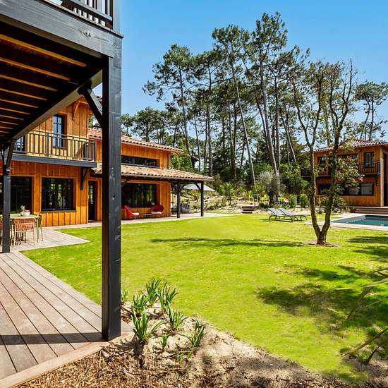 Location saisonnière. Cap Ferret, au coeur du village du Canon, cette maison d'architecte en bois typique de la région est implantée à quelques pas de la plage. La villa, bénéficiant d'un label de tourisme responsable QALIA, peut accueillir jusqu'à 14 personnes dans ses 7 chambres, chacune avec sa salle de bains ou d'eau, réparties entre la maison principale et l'annexe. Située sur les hauteurs du village, elle est à 5 minutes à pied des commerces du Canon et de son village ostréicole typique du Bassin d'Arcachon, où vous pourrez déguster de...