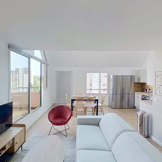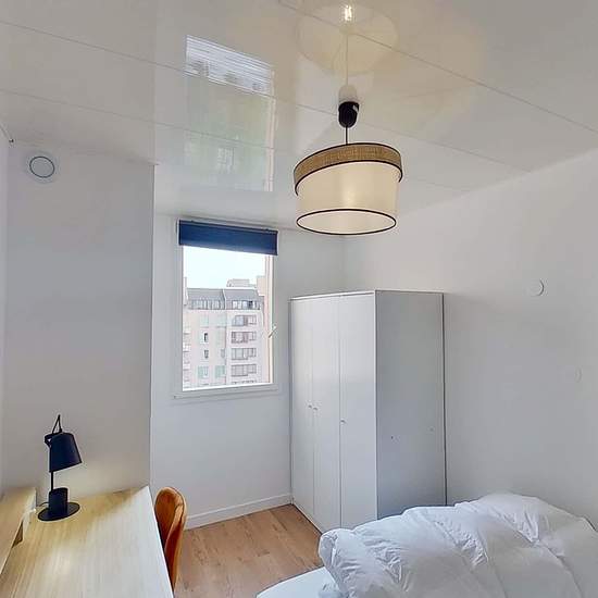 This spacious and comfortable room has been designed for you dear roomie! Practical and functional, the room is equipped with high quality bedding (140x200cm), a beautiful wardrobe, a night table and a true office space for your exams or your home office days! All of this in a cheerful and warm atmosphere. In addition, you have access to a shared bathroom and a shared terrace. Beautiful flatshare in Champs-sur-Marne ! Discover Champs Aubépines 2, our cosy and freshly renovated contemporary-style apartment. Close to local shops and restaurant...