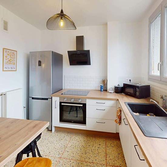 Oqoro vous présente cette colocation de 3 chambres, située au 140 rue Sully à Clermont-Ferrand, dans un appartement de 71 m² au 4ᵉ étage d’un immeuble calme. LES ESPACES COMMUNSLa pièce de vie, très lumineuse, est meublée d’un canapé, d’une table basse, d’une étagère, d’un meuble TV et d’une télévision. Elle donne accès à un balcon sans vis-à-vis. La cuisine séparée est entièrement équipée : four, micro-ondes, plaques de cuisson, hotte, évier, réfrigérateur avec compartiment congélateur, lave-vaisselle, ainsi que de nombreux rangements et u...
