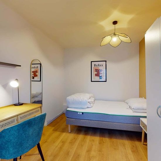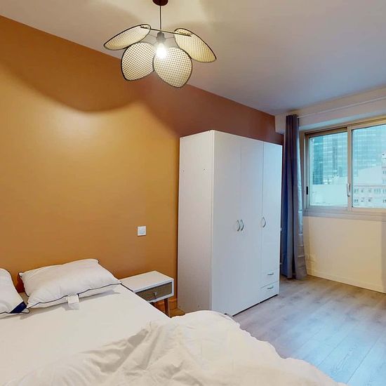 This spacious and comfortable room has been designed for you dear roomie! Practical and functional, the room is equipped with high quality bedding (140x200cm), a beautifull wardrobe, a night table and a true office space for your exams or your home office days! All of this in a cheerful and warm atmosphere. In addition, you have access to a shared bathroom. Beautiful flatshare in Courbevoie ! Discover Courbevoie Tour Gambetta, our cosy and freshly renovated contemporary-style apartment. Close to local shops and restaurants, it is easily acce...