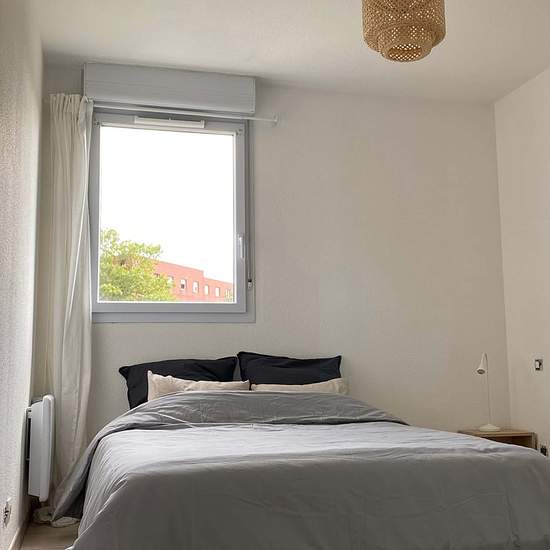 LES ESPACES COMMUNSLa pièce de vie est meublée avec un canapé, un meuble télévision, une télévision et une table basse.Elle donne directement accès sur un large balcon, ce qui permet de profiter des extérieurs.La cuisine ouverte est équipée d'un four, d'un micro-ondes, de plaques de cuisson, d'une hotte, d'un réfrigérateur avec compartiment congélateur, d'un lave-linge, d'un bar et ses chaises de bar, ainsi que de nombreux rangements et ustensiles de cuisine.Le plus: bouilloire.La salle d'eau comporte une baignoire, un meuble vasque avec mir...