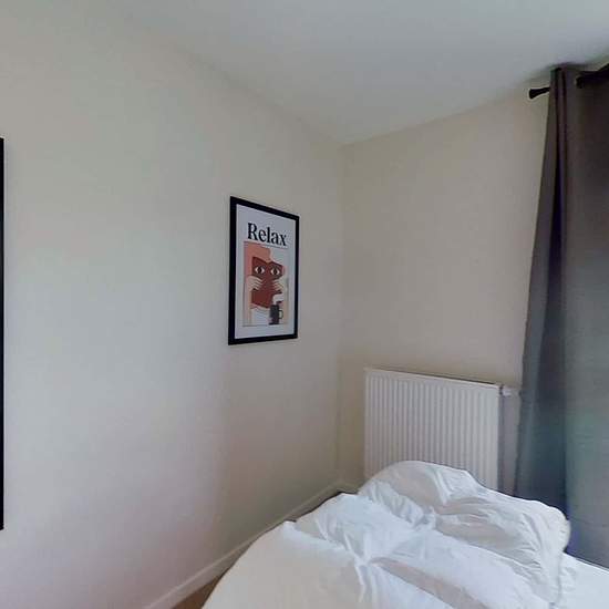 This spacious and comfortable room has been designed for you dear roomie! Practical and functional, the room is equipped with high quality bedding (140x200cm), a beautiful wardrobe, a night table and a true office space for your exams or your home office days! All of this in a cheerful and warm atmosphere. In addition, you have access to a shared bathroom. Beautiful flatshare in Lille ! Discover Lille Marquillies, our cosy and freshly renovated contemporary-style apartment. Close to local shops and restaurants, it is easily accessible by M1,...