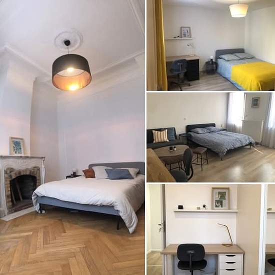 Trois chambres meublées disponibles dans une belle maison de six chambres en colocation en direct avec propriétaire (aucun frais d'agence) · Emplacement idéal pour jeunes actifs ou étudiants située à Roubaix proche parc Barbieux - rue d'Inkermann à 20 mins de Lille Flandres · Proche des écoles CEPROCO, ESMOD (moins de 10 mins à pied) et IUT C, ENSAIT, UFR LEA, EMMD, INFOCOM, EDHEC (moins de 15-20 mins à pied) · Proche transports en commun avec : o métro ligne 2 station Épeule - Montesquieu à 2 mins ; o tramway ligne R station Hôpital...