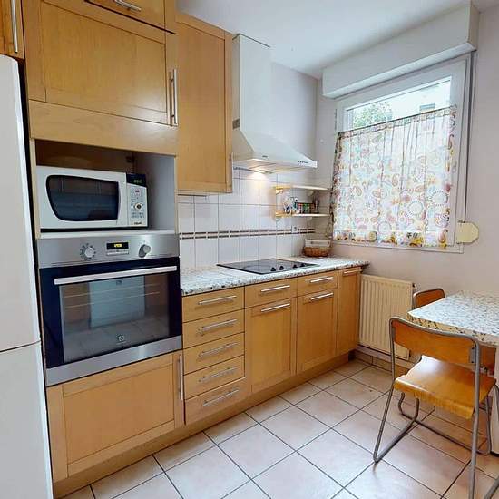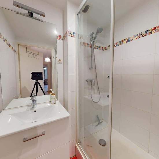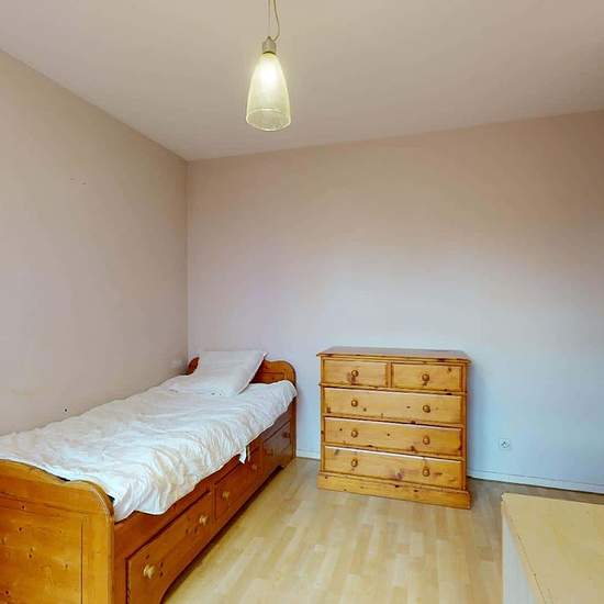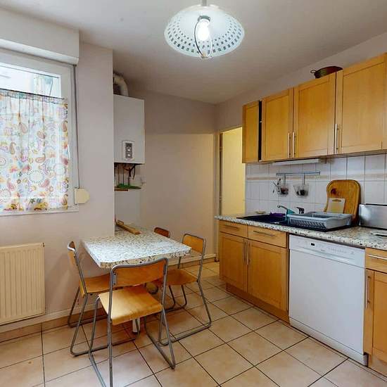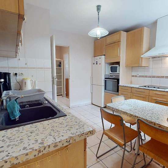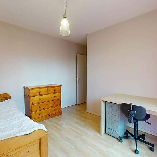 APPARTEMENT 5 PIÈCES AVEC TERRASSE À côté du métro Place Jean Jaurès B, venez découvrir au 71 Rue Pré Gaudry à Lyon (69007) cette colocation de 4 chambres de 108 m². LA CHAMBRE Cette chambre se compose d'un lit simple, d'un bureau accompagné d'une chaise, d'une commode, et d'un placard de rangement. LES ESPACES COMMUNS L'appartement dispose d'un salon équipé d'un canapé, d'un fauteuil, d'une table à manger ainsi que d'une télévision, de trois chambres, d'une cuisine et d'une salle de bains avec baignoire et douche. La cuisine est équipée (...