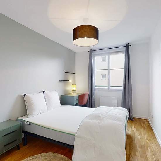 This spacious and comfortable room has been designed for you dear roomie! Practical and functional, the room is equipped with high quality bedding (140x200cm), a beautiful wardrobe, a night table and a true office space for your exams or your home office days! All of this in a cheerful and warm atmosphere. In addition, you have access to a shared bathroom and a shared balcony. Beautiful flatshare in Lyon ! Discover Lyon Jean 23, our cosy and freshly renovated contemporary-style apartment. Close to local shops and restaurants, it is easily ac...