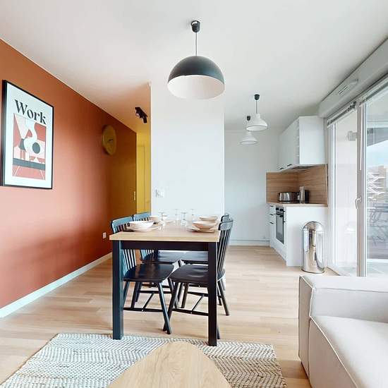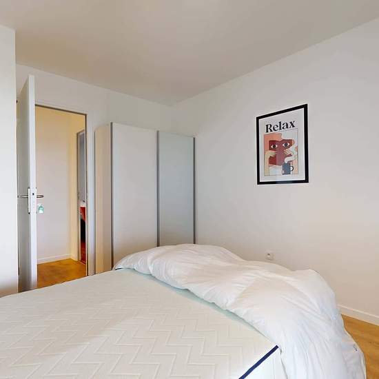 This spacious and comfortable room has been designed for you dear roomie! Practical and functional, the room is equipped with high quality bedding (140x200cm), a beautiful wardrobe, a night table and a true office space for your exams or your home office days! All of this in a cheerful and warm atmosphere. In addition, you have access to a shared bathroom. Beautiful flatshare in Nanterre ! Discover Nanterre République, our cosy and freshly renovated contemporary-style apartment. Close to local shops and restaurants, it is easily accessible b...