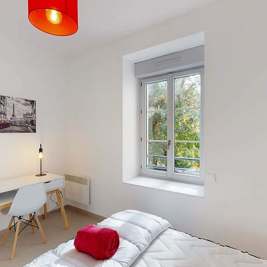 Discover this beautiful room fully equiped and designed for one person. You will also have the great pleasure of sharing your bathroom with one of your colivers. Get to know more about your neighbour while brushing your teeth ! This modern house will seduce you with its location in a developing neighbourhood and its nice and generous common spaces. You will discover a charming house transformed into a coliving surrounded by a nice outdoor area. It is located 3 minutes from Tram T2 “Mangin” that brings you to Nantes city centre. You can take ...