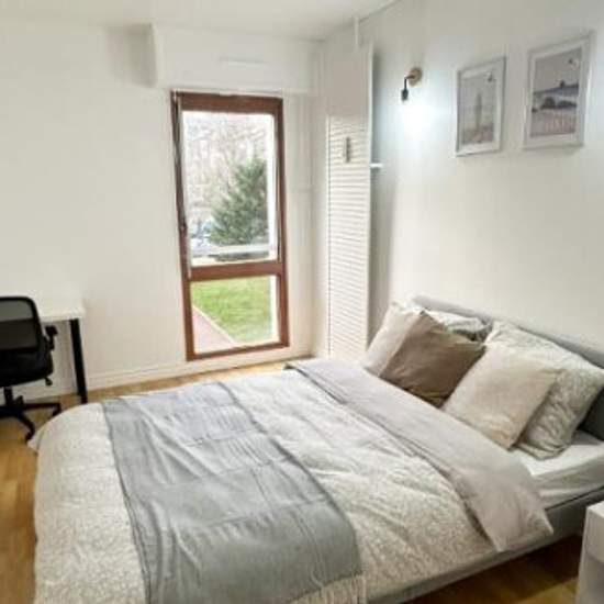 1 chambre(s) libre(s) dans une colocation de 1 chambres dans un appartment de 100m2 chambre meublée avec loggia privative, dans un appartement refait à neuf fin 2023 ( 1ᵉʳ étage avec ascenseur, balcon filant, parking et local vélo). L'appartement : Salon ouvrant sur balcon Cuisine équipée (LV, LL, four, micro-ondes, grand frigo-congélo, bouilloire) 2 salles de douche, 1 WC séparé Fibre + routeur répéteur, Netflix possible La chambre : Lit 140×200 cm (literie fournie), bureau + chaise, placard intégré, chevets, déco Serrure privative Loggia f...