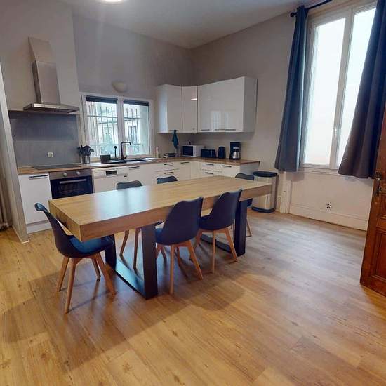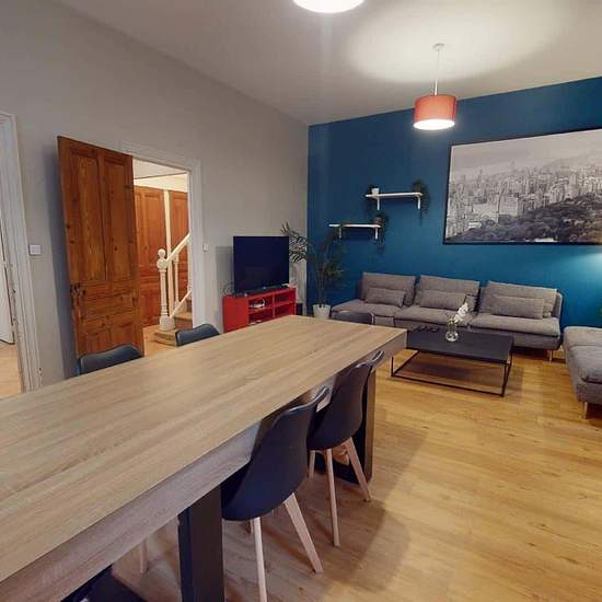 Oqoro vous présente cette colocation de 6 chambres de 135 m² située au 11 Rue Palluat De Besset à Saint-Étienne (42000). LES ESPACES COMMUNS Co-linving de 6 chambres de 135m2 située sur la commune de Saint-Etienne au 11 rue Palluat de Besset. Les parties communes de cette colocation comprennent un grand salon avec canapés, table basses, TV, grandes tables à manger et cuisine ouverte. La cuisine est équipée avec tout le nécessaire : deux frigos avec congélateurs, four, plaques de cuisson, hotte, rangements, micro-ondes, machines à café, rang...