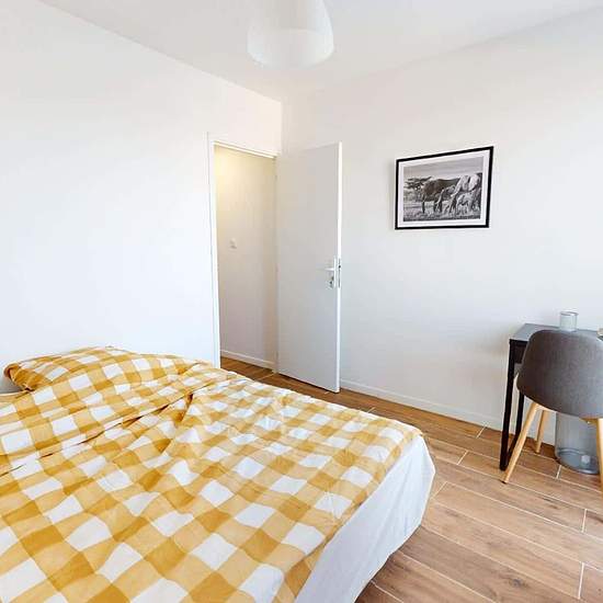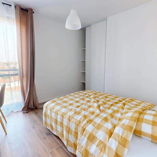 Spacest vous présente cette colocation de 4 chambres de 74 m² située au 275 Route De Seysses à Toulouse (31100).LA CHAMBRECette chambre se compose d'un lit double, d'un bureau accompagné d'une table et d'une lampe, et d'un placard de rangement.LES ESPACES COMMUNSCet appartement de 5 pièces propose un salon, une cuisine équipée (dont lave-vaisselle) et une salle de bains avec douche.Le chauffage est collectif.Cet appartement se situe au 5e étage d'un immeuble avec ascenseur.LES EXTÉRIEURSUn local vélos est aussi disponible dans le bâtiment.LE...