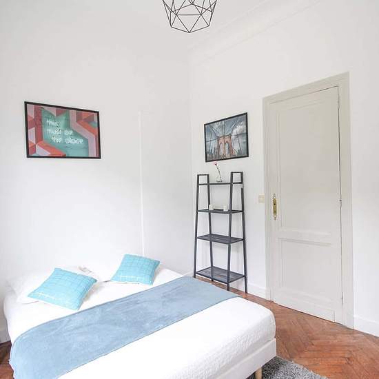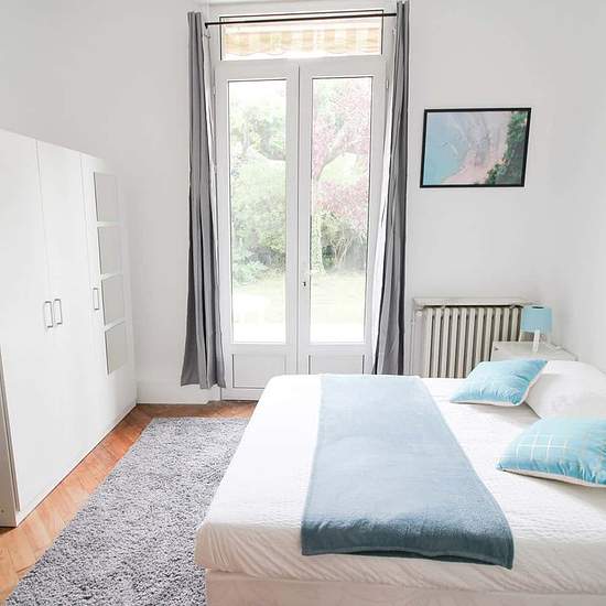 [FR] Chambre de 12m², entièrement meublée. Elle dispose d’un lit double (140x190) accompagné d'une table de chevet avec lampe et d'un grand miroir en tête de lit. Un espace de travail est disponible, composé d'un bureau avec chaise et lampe. La chambre propose également plusieurs rangements : une armoire avec penderie et une étagère. L'atout majeur de cette chambre est son accès direct vers le jardin. Situé dans le quartier Saint- Genès, cette maison de 163m² bénéficie d’un emplacement idéal, à deux pas de l’Université de Bordeaux (Campus Ca...