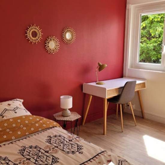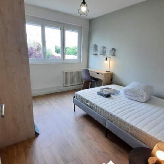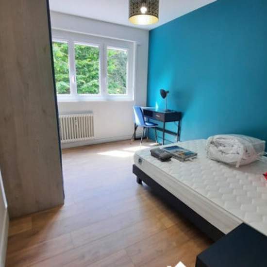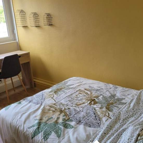 1 chambre(s) libre(s) dans une colocation de 1 chambres dans un appartment de 98m2 Appartement de 98m² au 2ème étage d'une résidence sécurisée, composé de 5 chambres individuelles meublées avec du mobilier neuf, et toutes équipées d'un lit double, d'un bureau, table et lampe de chevet et des placards de rangements (dressing aménagé) avec une large porte fenêtre double vitrage avec volet roulant électrique sur chaque porte fenêtre, sans vis-à-vis et au calme. Fermeture à clé individuelle pour chaque chambre. Une parure de draps, couette et se...