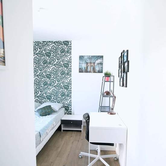 [FR] Chambre de 12m², entièrement meublée. Elle dispose d’un lit double (140x190) accompagné d'une table de chevet avec lampe. Un espace de travail est disponible, composé d'un bureau avec chaise et lampe. La chambre propose également plusieurs rangements : un placard intégré avec penderie et une étagère. Situé aux portes de Paris, cet appartement de 90m² bénéficie d’un emplacement idéal, à deux pas du Parc Roger Salengro et de la station de métro : Saint Ouen et à proximité de toutes les commodiéts. L’appartement se trouve au 2ème étage d’u...