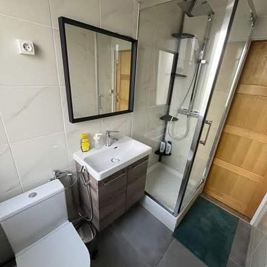 Modern shared house in Mons en Baroeul, 5 minutes walking from the metro Mons Sarts and 2 metro stops from the centre of Lille! Spacious and bright kitchen, all equipped with 2 big fridges, 6 cooking stoves, oven, microwave, dishwasher. Washing machine and dryer in the living room with couch, TV and big sliding doors overlooking a private little garden. 6 rooms over 2 floors with queen-size bed (with integrated space under the mattress), cupboard and desk. One side of the house overlooks a little parc, the other one the house alley, no d...