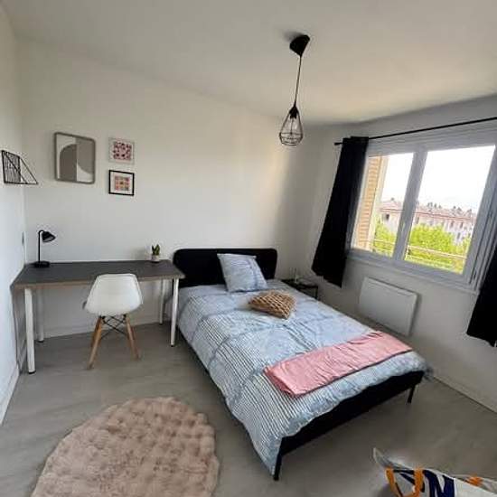 étudiante – à Bron (Centre-ville) Disponible immédiatement disponible dans un appartement de 65 m² situé en plein centre de Bron, au 3e étage, destinées exclusivement à des étudiantes. appartement richement meublé avec goût, mobilier neuf. au pied des ligne de tram T2 et T5 proche des facultés. Toutes les charges (eau elec internet chauffage) compris. • Bail éligible aux APL 410+ Charge 40€ comprenant eau chauffage elec internet assurance