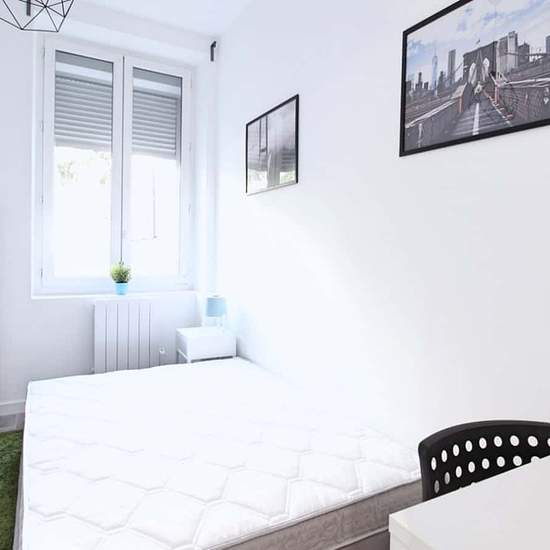 [FR] Chambre de 12m², entièrement meublée. Elle dispose d’un lit double (140x190) accompagné d'une table de chevet avec lampe. Un espace de travail est disponible, composé d'un bureau avec chaise et lampe. La chambre propose également plusieurs rangements : une armoire avec penderie et une étagère. L'atout majeur de cette chambre est sa salle de bain privative. Situé dans le 4ème arrondissement de Marseille, dans le quartier La Blancarde, cet appartement de 52m² bénéficie d’un emplacement idéal, à deux pas du Parc Vallier et à proximité de t...