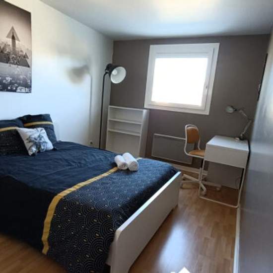 1 chambre(s) libre(s) dans une colocation de 1 chambres dans une maison de 148m2 Dans une magnifique maison colocation de 6 chambres. Entièrement équipée cette maison vous offre un confort de vie agréable avec un jardin. La cuisine ouverte sur le salon est entièrement équipée : Plaque de cuisson, four, frigo, lave vaisselle, micro onde, bouilloire, grille pain, machine à café. 1 chambre entièrement meublé d'un : Lit 2 places 140x200 Bureau et chaise Grand placard intégrée. Couette et Oreiller drap house et house de couette Un garage pour ran...