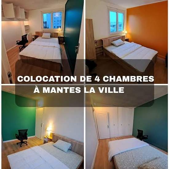 Colocation meublée de 4 chambres (73 m²), lumineuse et entièrement rénovée, au 5e étage avec ascenseur. 3 chambres/4 disponibles à partir de 500€ CC Appartement tout équipé : cuisine moderne, salon avec TV, lave-linge, sèche-linge, lave-vaisselle. Chambres avec lit double, bureau, dressing. 2 salles d’eau +2 WC séparés. Femme de ménage chaque semaines. Tout compris : internet, eau, électricité, chauffage, assurance, entretien… Emplacement idéal : * 10 min à pied de la gare Mantes Station * Bus directs vers La Défense et Cergy * Proche I...