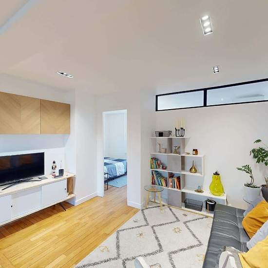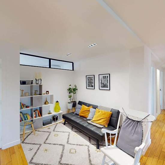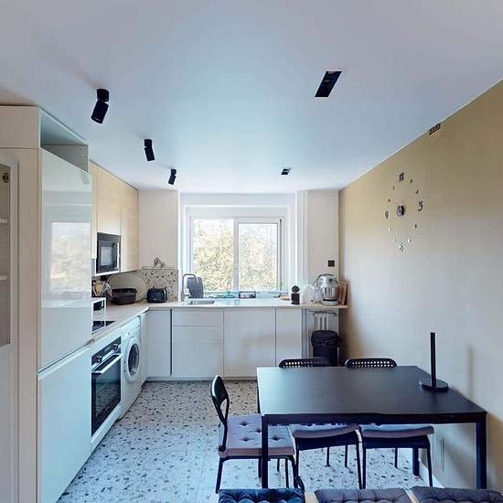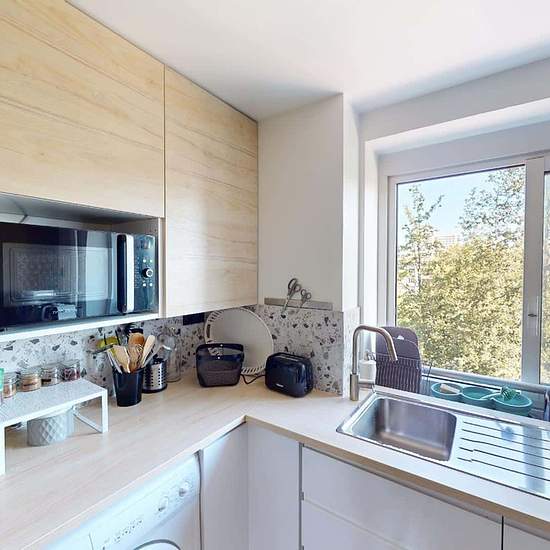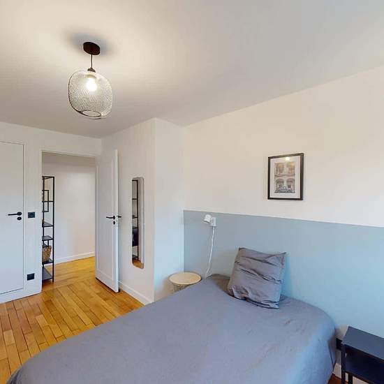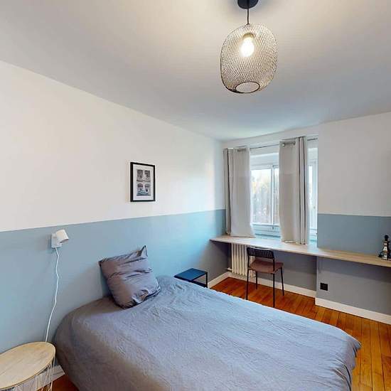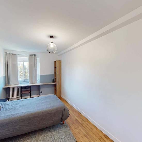GRAND APPARTEMENT 5 PIÈCES Au 76 Boulevard D'orléans dans la commune de Rouen (76100), découvrez cette colocation de 4 chambres de 100 m². LA CHAMBRE Cette chambre est équipée d'un lit double, de deux chevets, d'un bureau et d'une chaise. LES ESPACES COMMUNS L'appartement est pourvu d'un salon comprenant un canapé, un fauteuil à bascule, une télévision avec son meuble, ainsi que des espaces de rangement. La cuisine, qui s'ouvre sur le salon, est équipée d'un réfrigérateur encastré, d'un four encastrable, de quatre plaques de cuisson, d'une m...
