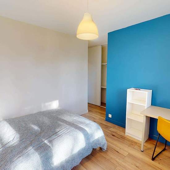 COLOCATION 4 CHAMBRES AVEC 2 SALLES DE BAINS, DRESSING PRIVÉS ET BALCON À quelques minutes de l'arrêt de tramway Saint-Martin-d'Hères, Parc Jo Blanchon (ligne D), découvrez au 2 Rue Honoré Daumier (Saint-Martin-d'Hères, 38400) cette colocation de 4 chambres de 84 m². LA CHAMBRE Cette troisième chambre de la colocation est dotée d’un lit double, d’une table de chevet et lampe, d’un grand placard mural, d’un bureau, chaise et lampe. LES ESPACES COMMUNS Cet appartement est doté d’un salon avec un canapé, deux fauteuils, deux tables basses, un...